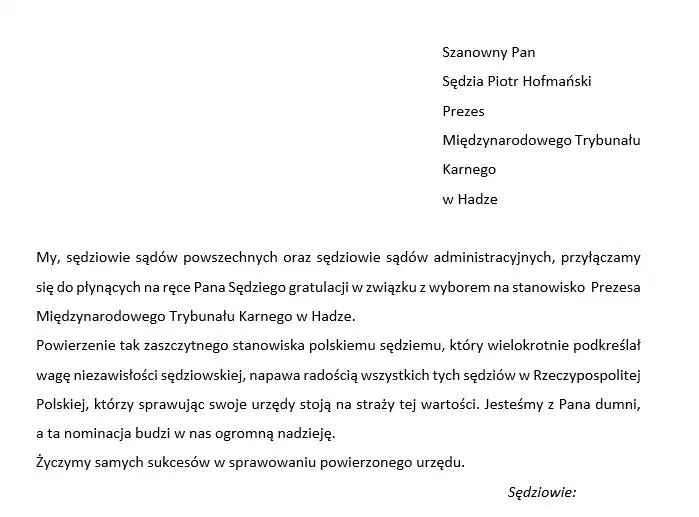 Gratulacje dla Pana Sędziego Piotra Hofmańskiego.