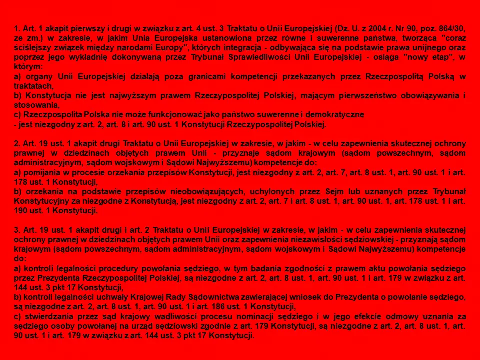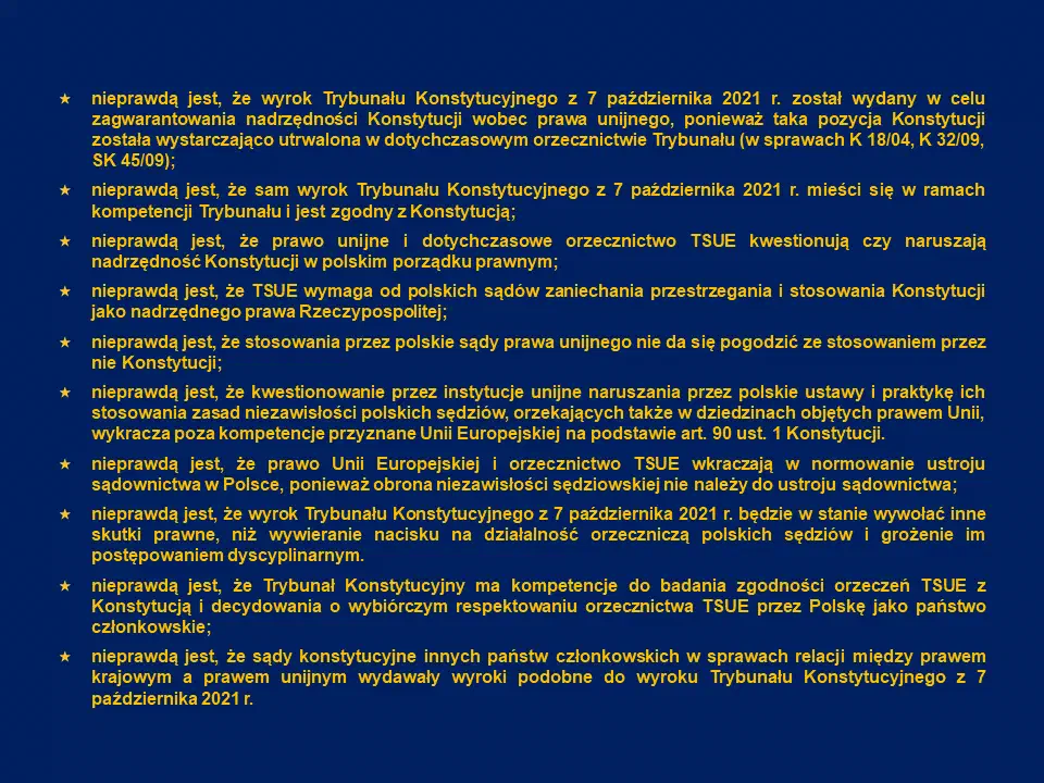 oświadczenie odnosi się do treści wygłoszonych w siedzibie Trybunału Konstytucyjnego w dniu 7 października 2021 r., opublikowanych w Dzienniku Ustaw z dnia 12 października 2021 r. - Dz.U. poz. 1852.: