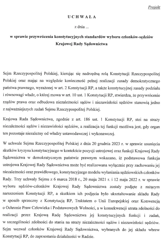 Na stronie Sejmu RP ukazał się druk projektu uchwały: https://orka.sejm.gov.pl/Druki10ka.nsf/0/7B7BCECE386EE57EC1258DA8006F3CCB/%24File/2258.pdf