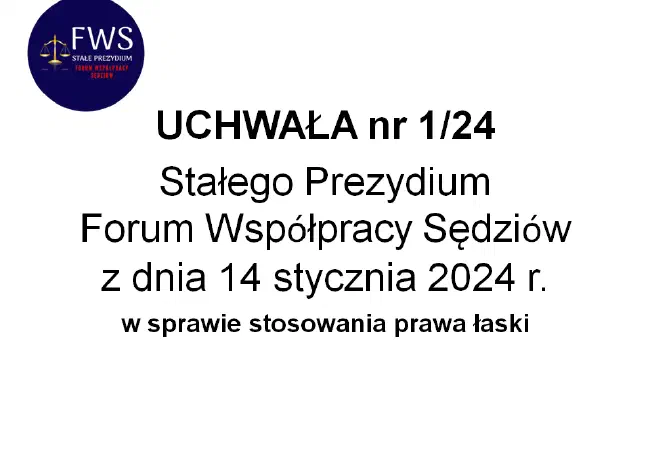 Uchwała 1/24 Stałego Prezydium FWS z dnia 14 stycznia 2024 r. w sprawie stosowania prawa łaski