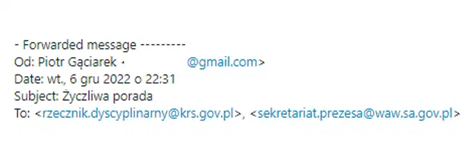 Dostrzegając kłopotliwą i zwyczajnie przykrą sytuację w jakiej znalazł się Pan osobiście i Pański nieodłączny pomocnik pan wiceprezes/zastępca Przemysław W.Radzik, po wtorkowym (06.12.2022) zabezpieczeniu wydanym przez Europejski Trybunał Sprawiedliwości w Strasburgu w sprawie sędziów Sądu Apelacyjnego Marzanny Piekarskiej-Drążek, Ewy Gregajtys i Ewy Leszczyńskiej-Furtak, postanowiłem pospieszyć z życzliwą dla Panów radą.