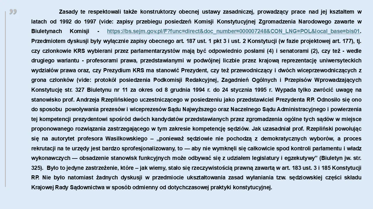 Zachęcam także do lektury zapisów przebiegu posiedzeń Komisji Konstytucyjnej Zgromadzenia Narodowego z lat 1992 - 1997. Biuletyny Komisji - https://bs.sejm.gov.pl/F?func=direct&doc_number=000007248&CON_LNG=POL&local_base=bis01