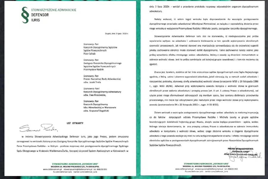 List otwarty dot. postępowania dyscyplinarnego Sędziego Sądu Okręgowego w Krakowie Waldemara Żurka. 3 lipca 2020 r. treść listu - w załączeniu