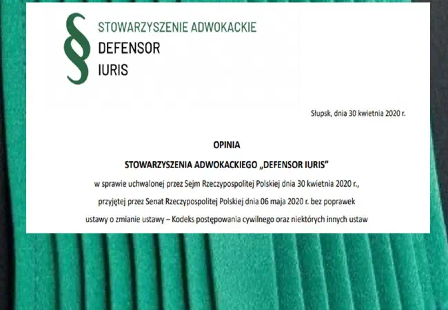 opinia Stowarzyszenia Adwokackiego "Defensor Iuris" w sprawie uchwalonej przez Sejm Rzeczypospolitej Polskiej ustawy z dnia 28 marca 2020 r. - tzw. "tarczy antykryzysowej"