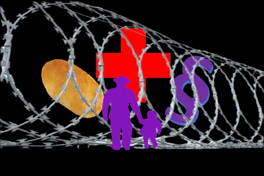 \ Stoi sobie człowiek prawy i sprawiedliwy nad granicą, a tu poza nią, na wyciągnięcie ręki głodne i spragnione dziecko/dorosły (w zależności od stopnia wrażliwości niepotrzebny wyraz należy skreślić) prosi o pomoc. Ale przecież człowiek znający prawo dobrze wie, iż bez złożenia stosownych wniosków, uzyskania wizy, itd., nic uczynić nie może, poza uchronieniem innych obywateli przed popełnieniem błędu i poza uniemożliwieniem także tym mniej prawym i sprawiedliwym pójścia za nierozsądnym odruchem serca. I proszę skończyć z tą demagogią, że nie trzeba tej granicy przekraczać, że wystarczy wyciągnąć rękę i podać napoje lub żywność. Przecież nie można od prawego i sprawiedliwego obywatela wymagać, aby przemycał cokolwiek przez granicę, a już szczególnie chleb i czystą wodę dla głodnych i spragnionych. Tym bardziej jeśli napoje i żywność mogą podać obywatele państwa ościennego!