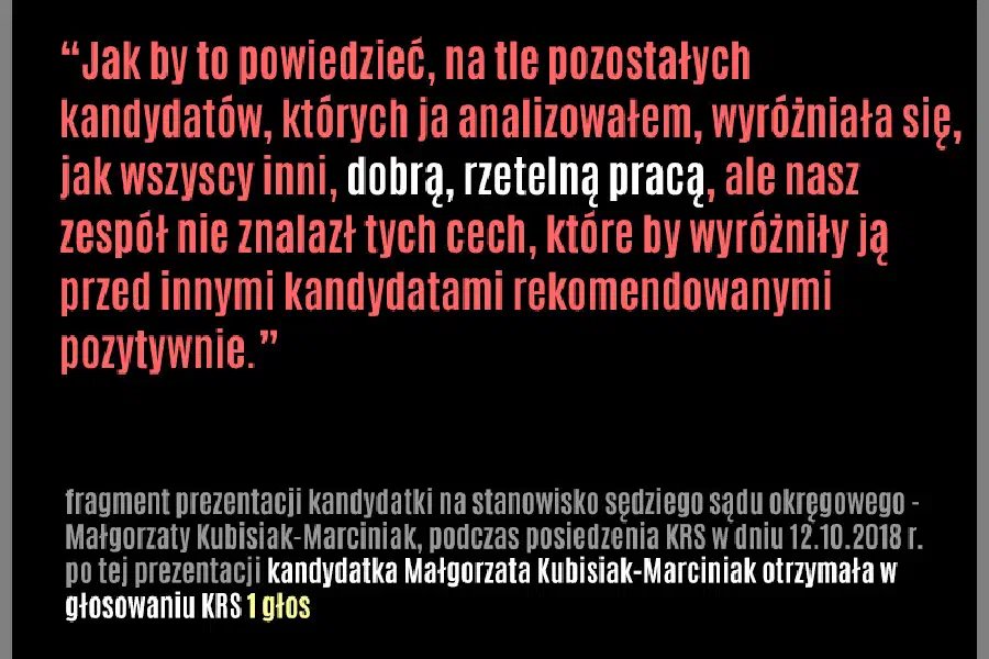 Kandydatka nie uzyskała rekomendacji Zespołu ze względu na nienajlepszą ocenę z egzaminu sędziowskiego