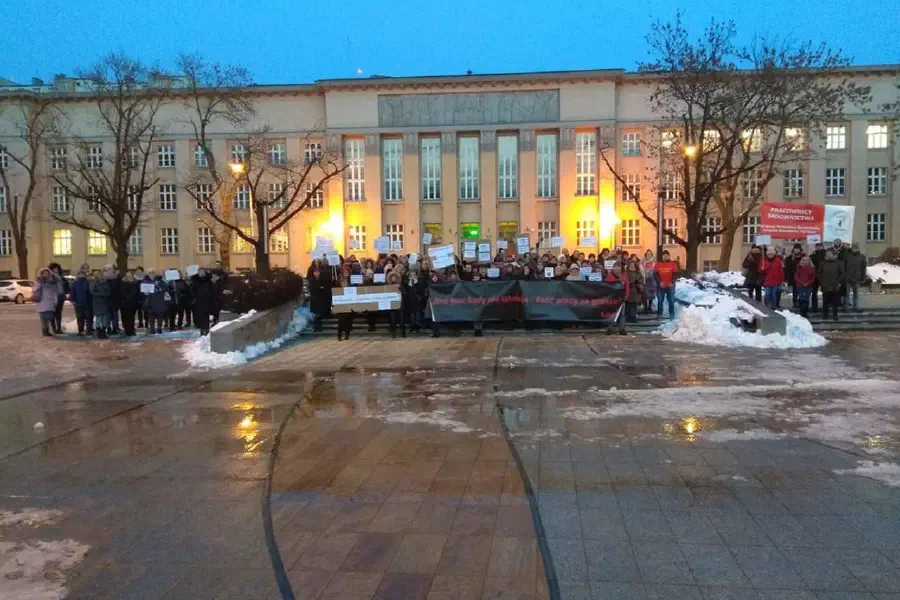 Dostałam w prezencie i powiesiłam w swoim gabinecie pamiątkowe zbiorowe zdjęcie naszych pracowników z pierwszej, zorganizowanej po godzinach pracy - 7 lutego 2019 r. Plac Dąbrowskiego godzina 15.40 - pikiety w sprawie żądań podwyższenia wynagrodzeń. Według opisu na Facebooku (Grupa otwarta: Protesty Pracowników Sądów i Prokurator) zdjęcie przedstawia stan na godzinę 16.50 i jest na nim 118 protestujących. W kluczowym momencie pikiety organizatorzy doliczyli się 160 osób. Demonstranci rozeszli się po godzinie 17-tej.
