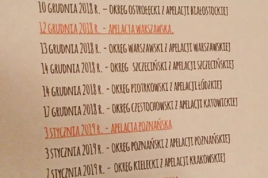 14 grudnia 2018 r. - okręg piotrkowski z apelacji łódzkiej